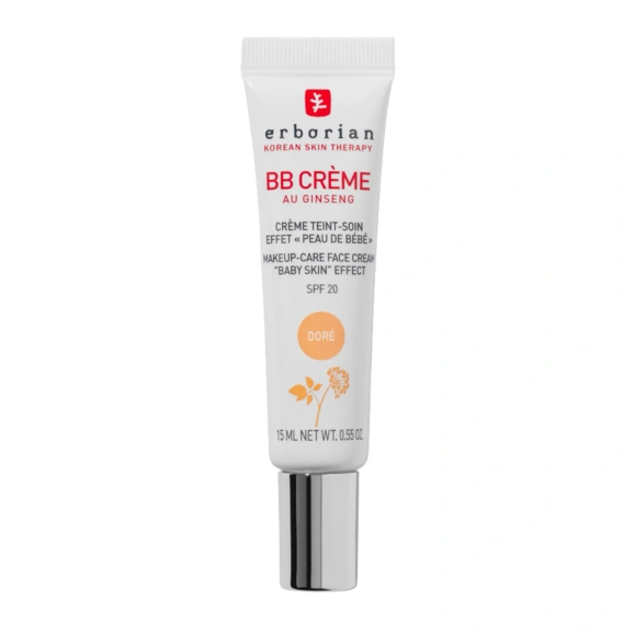 Erborian BB Crème au Ginseng SPF20 Doré to lekki krem BB do twarzy, który łączy codzienną pielęgnację z naturalnie wyglądającym makijażem. Produkt ujednolica koloryt skóry, nadając jej aksamitne, matowe wykończenie bez efektu maski. Wersja Doré sprawdza się przy cieplejszych odcieniach cery, oferując subtelny efekt „baby skin” i świeży, zadbany wygląd.