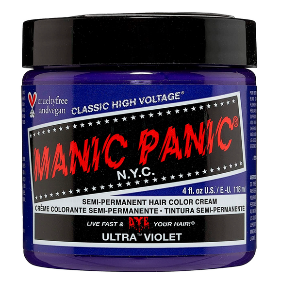 Manic Panic Classic High Voltage Ultra Violet to półtrwała farba do włosów w intensywnym, chłodnym odcieniu fioletu, stworzona dla osób, które chcą wyrazić indywidualny styl poprzez wyrazisty kolor. Kultowa formuła marki Manic Panic pozwala uzyskać zauważalny efekt już po pierwszej aplikacji, jednocześnie zachowując łatwość użycia bez trwałej zmiany koloru. To rozwiązanie odpowiednie zarówno do pełnej koloryzacji, jak i kreatywnych akcentów.