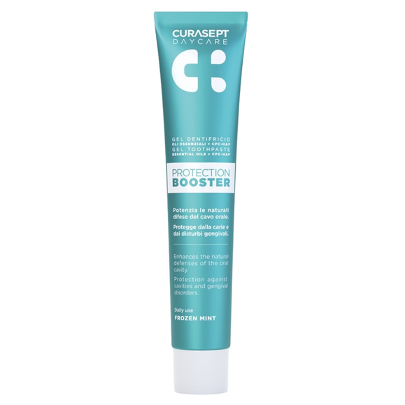 Curasept Daycare Booster Frozen Mint to nowoczesna pasta do zębów opracowana z myślą o codziennej pielęgnacji i ochronie jamy ustnej. Formuła oparta na opatentowanym kompleksie CPC-HAP (chlorek cetylopirydyny i hydroksyapatyt biomimetyczny) wspiera utrzymanie czystości, pomaga ograniczyć odkładanie się płytki nazębnej i wspomaga remineralizację szkliwa. Odświeżający smak mroźnej mięty sprawia, że codzienne szczotkowanie staje się przyjemne i skuteczne. Produkt zamknięty jest w aluminiowej, w pełni recyklingowalnej tubce.