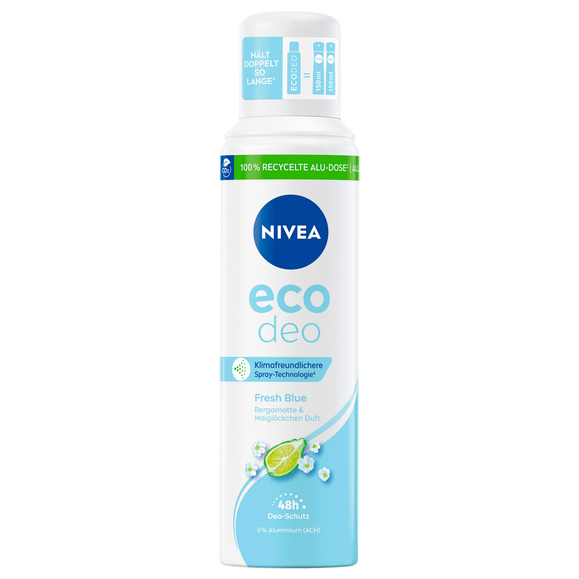 Nivea Eco Deo Fresh Blue dezodorant w sprayu to połączenie naturalnej świeżości i skutecznej ochrony do 48 godzin. Jego wegańska formuła bez soli aluminium pozwala skórze oddychać, zapewniając długotrwałe uczucie czystości i komfortu. Delikatny zapach bergamotki i konwalii nadaje produktowi lekkości i świeżości, idealnej do codziennego stosowania. Dezodorant został stworzony z myślą o osobach, które cenią naturalną pielęgnację i skuteczną ochronę bez kompromisów.