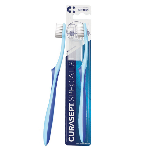 Szczoteczka ortodontyczna Curasept Ortho została opracowana specjalnie do codziennej pielęgnacji zębów i aparatu ortodontycznego. Jej kształt oraz rozmieszczenie włókien ułatwiają oczyszczanie okolic zamków, drutów i trudno dostępnych przestrzeni, gdzie zwykła szczoteczka może nie dotrzeć. Produkt polecany jest osobom noszącym stały aparat, które chcą zadbać o dokładną higienę jamy ustnej i utrzymanie zadbanego wyglądu uśmiechu.