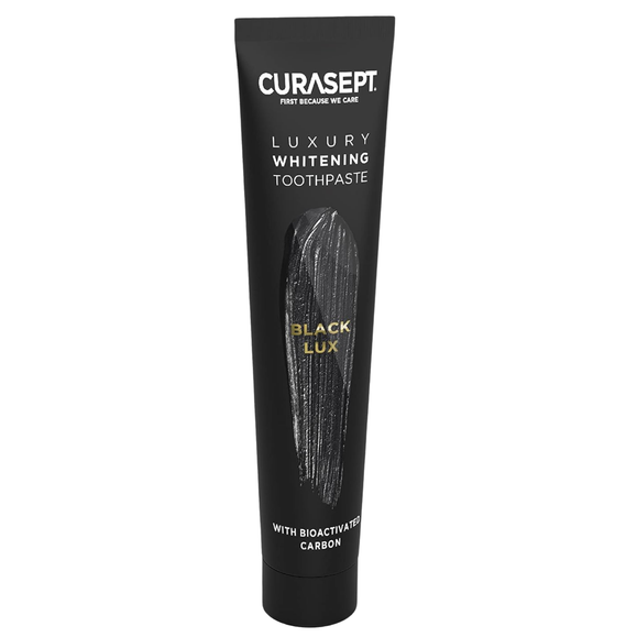 Curasept Whitening Luxury Black Lux to nowoczesna pasta do zębów opracowana z myślą o delikatnym, ale skutecznym oczyszczaniu i wspieraniu naturalnej bieli zębów. Jej unikalna czarna formuła z węglem aktywnym pomaga redukować przebarwienia powstałe na skutek spożywania kawy, herbaty czy innych barwiących produktów, jednocześnie pozostając łagodną dla szkliwa. Produkt został stworzony do codziennej pielęgnacji jamy ustnej, łącząc skuteczność działania z eleganckim charakterem serii Curasept Whitening.
